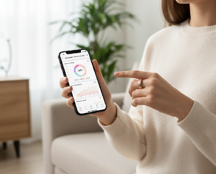 Yüzüğün uygulamasında adet döngüsü, hamilelik hazırlığı ve hamilelik dönemi gibi özel zamanları ayarlayabilir, bu sayede kadın sağlığı uyarılarını doğrudan yüzüğünüzden alabilirsiniz.